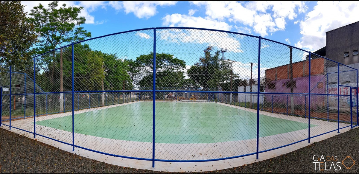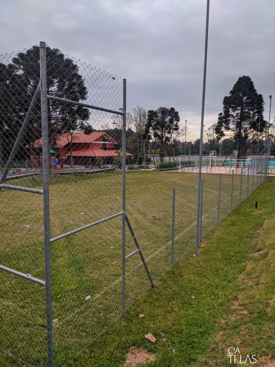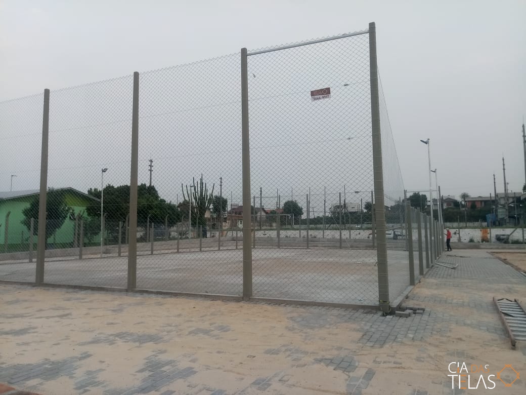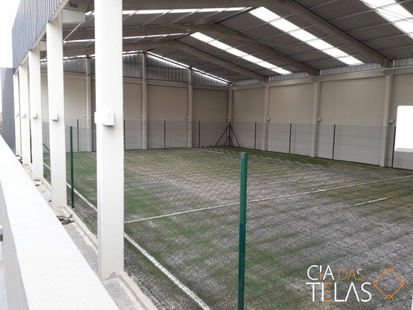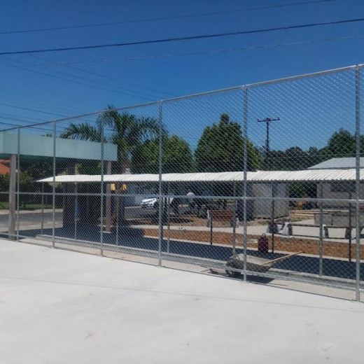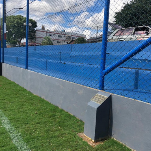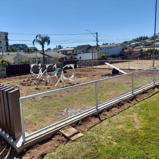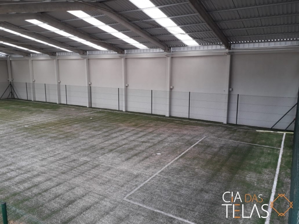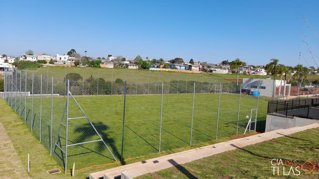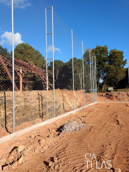 Construção da estrutura para o cercamento, inclui as telas, tubos, vigamento, goleiras e redes de proteção laterais. Mão de obra inclusa.
