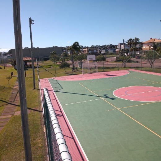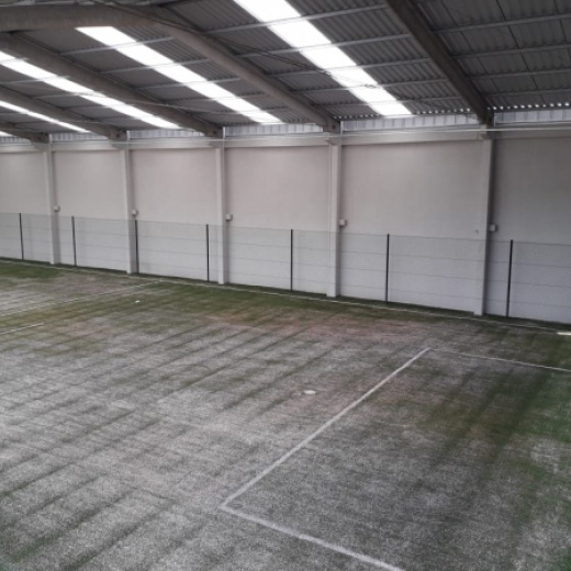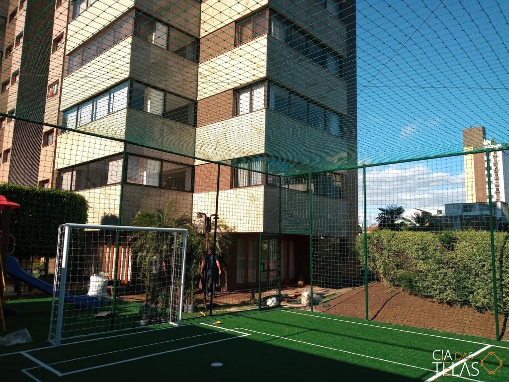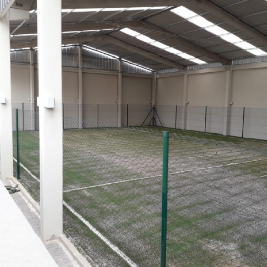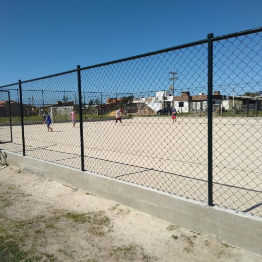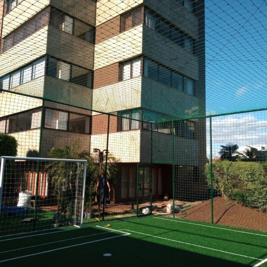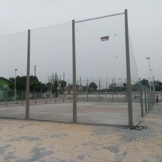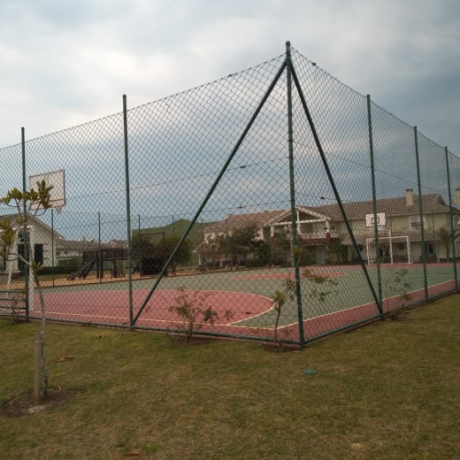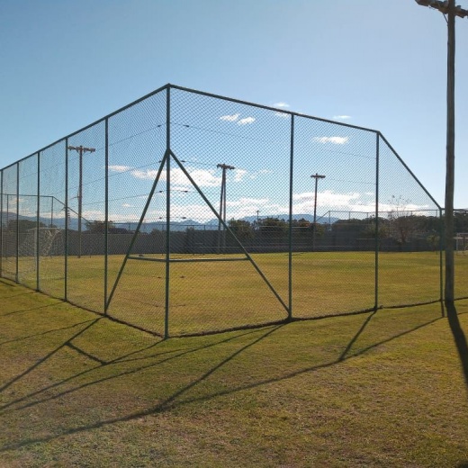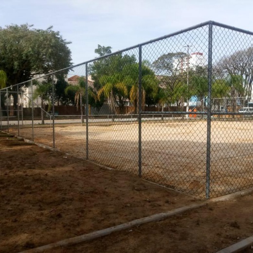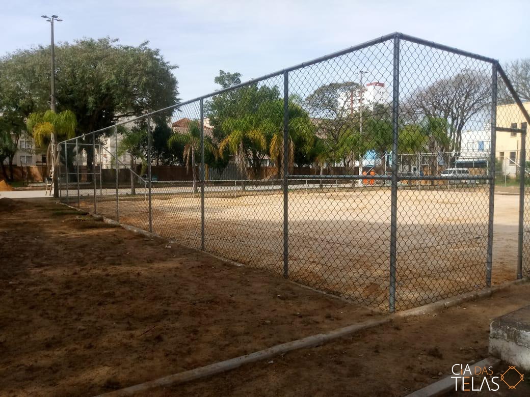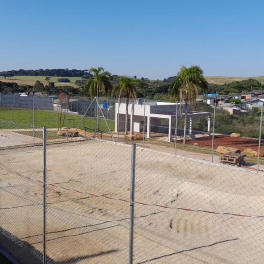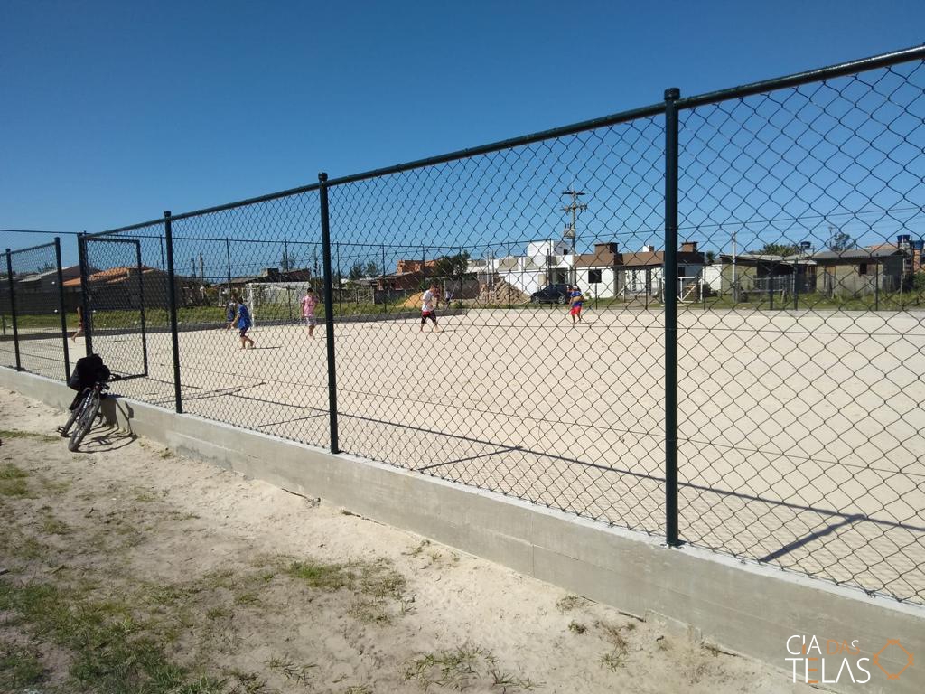 Construção da estrutura para o cercamento, inclui as telas, tubos, vigamento, goleiras e redes de proteção laterais. Mão de obra inclusa.